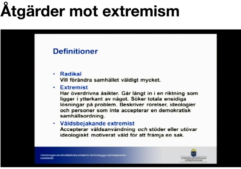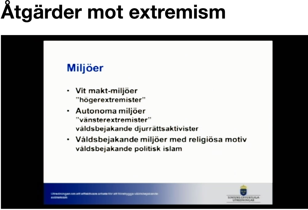 Idag har en ny och viktig utredning presenterats – Åtgärder mot extremism. Det är demokratiministern Birgitta Ohlsson (fp) som begärt utredningen. Bra tycker jag! Men kanske inte lika bra att en svensk minister säger: ”visar sina fula trynen” offentligt. Det verkar mer aktivistspråk än ministerspråk.