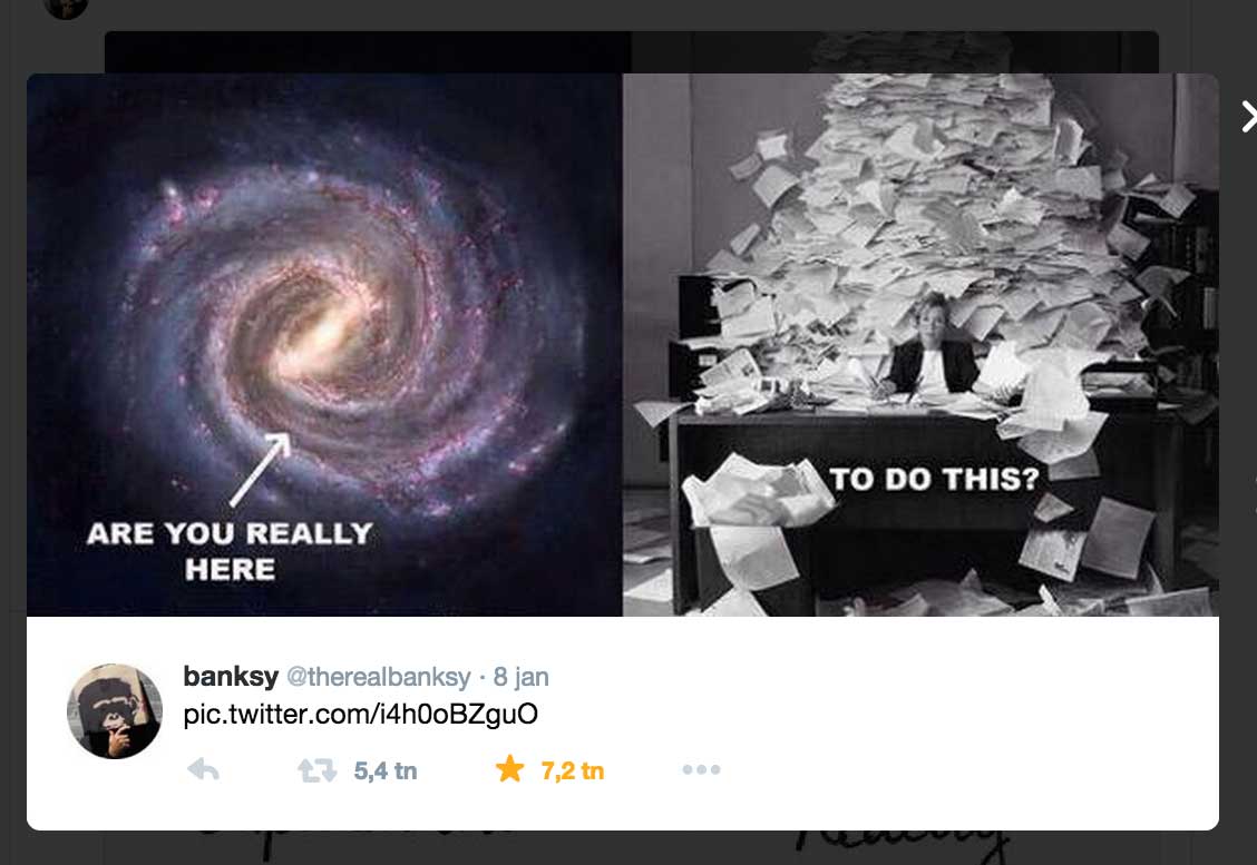 Favorit, Förebilder, Viktigast En ny favorit Datum: 2015-01-18Författare: B i r g i t t a Förmågan att se perspektiv i stort och smått – I love! BANKSY Dela detta: Klicka för att dela på X (Öppnas i ett nytt fönster) X Klicka för att dela på Facebook (Öppnas i ett nytt fönster) Facebook Klicka för att dela på Tumblr (Öppnas i ett nytt fönster) Tumblr Gilla Laddar in … Related