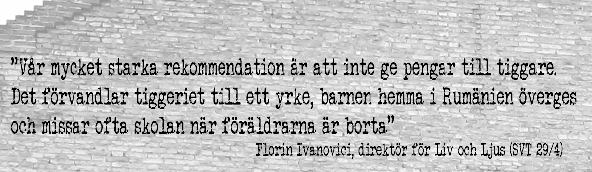 Själv har jag väldigt svårt att förstå folk som vill underhålla ett förnedrande leverne hos medmänniskor. Mycket bättre att ge till organisationer samt vara ett ”pain in the as” hos politikerna. Om inte annat – tänk på barnen!