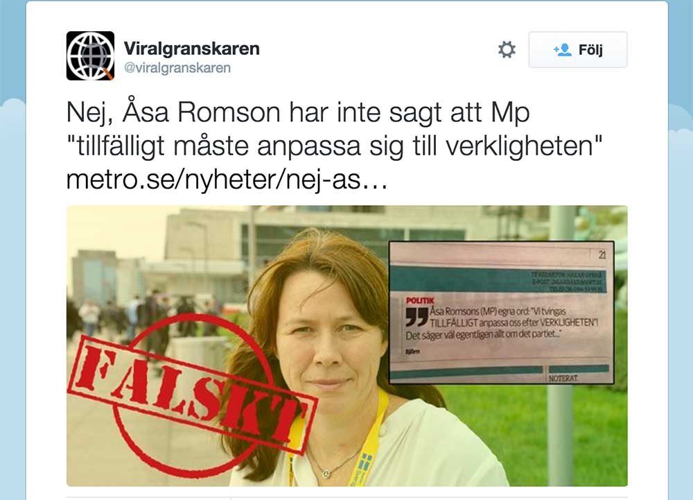 Viralgranskaren (eller rättare Metro) har granskat Åsa Romsons uttalande om att ”se verkligheten”. Anser tydligen att lögner spridits. Frågan är vad som sagts och vad som uppfattats – hur det tolkats.