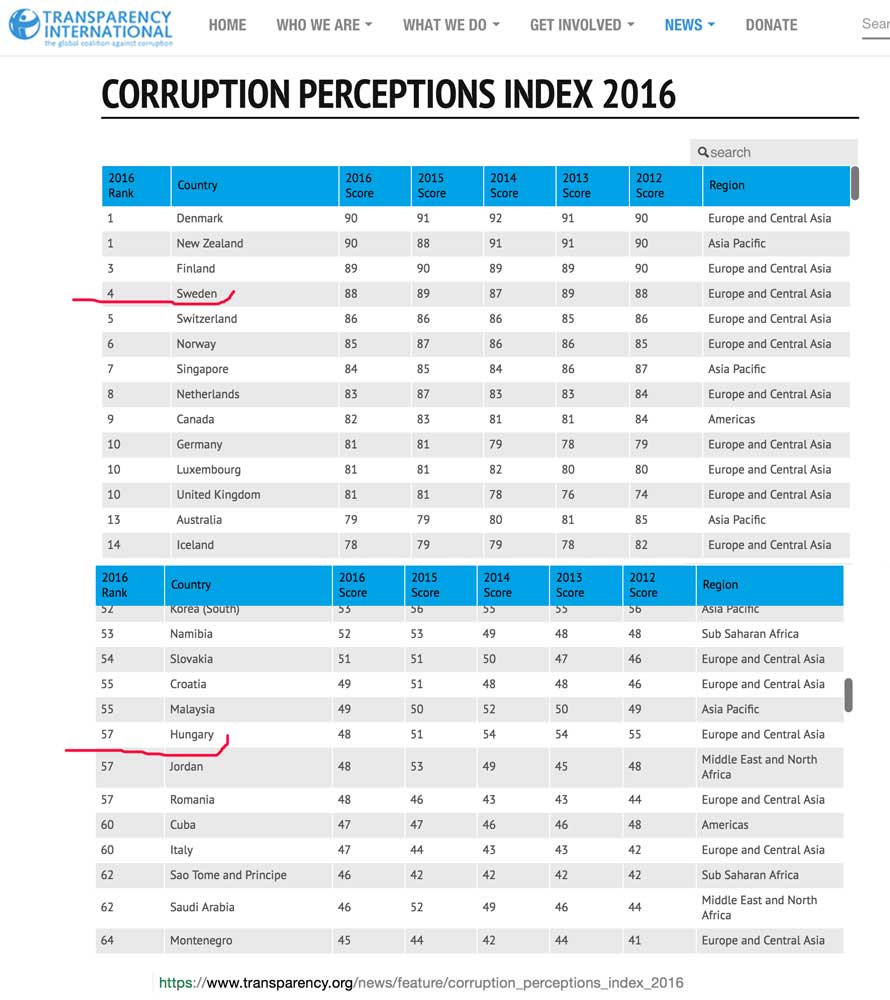 Sverige hamnar på plats 4 och Ungern på 57. Ungern har en hel del jobb att göra här och det borde vara viktigt för ledningen att klättra på denna skalan. Sverige har också utrymme att bli bättre.