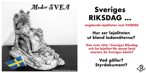 - Riksdagen – Sveriges högsta organ. Har alla ledamöterna sin lojalitet mot Sverige? Hur ser det ut? Vad händer om lojaliteten hos ledamöter ligger för ett annat land? Ligger ansvaret hos enskilda partier eller finns det ngt dokument som styr? (Får nog skriva till Talmannen.)