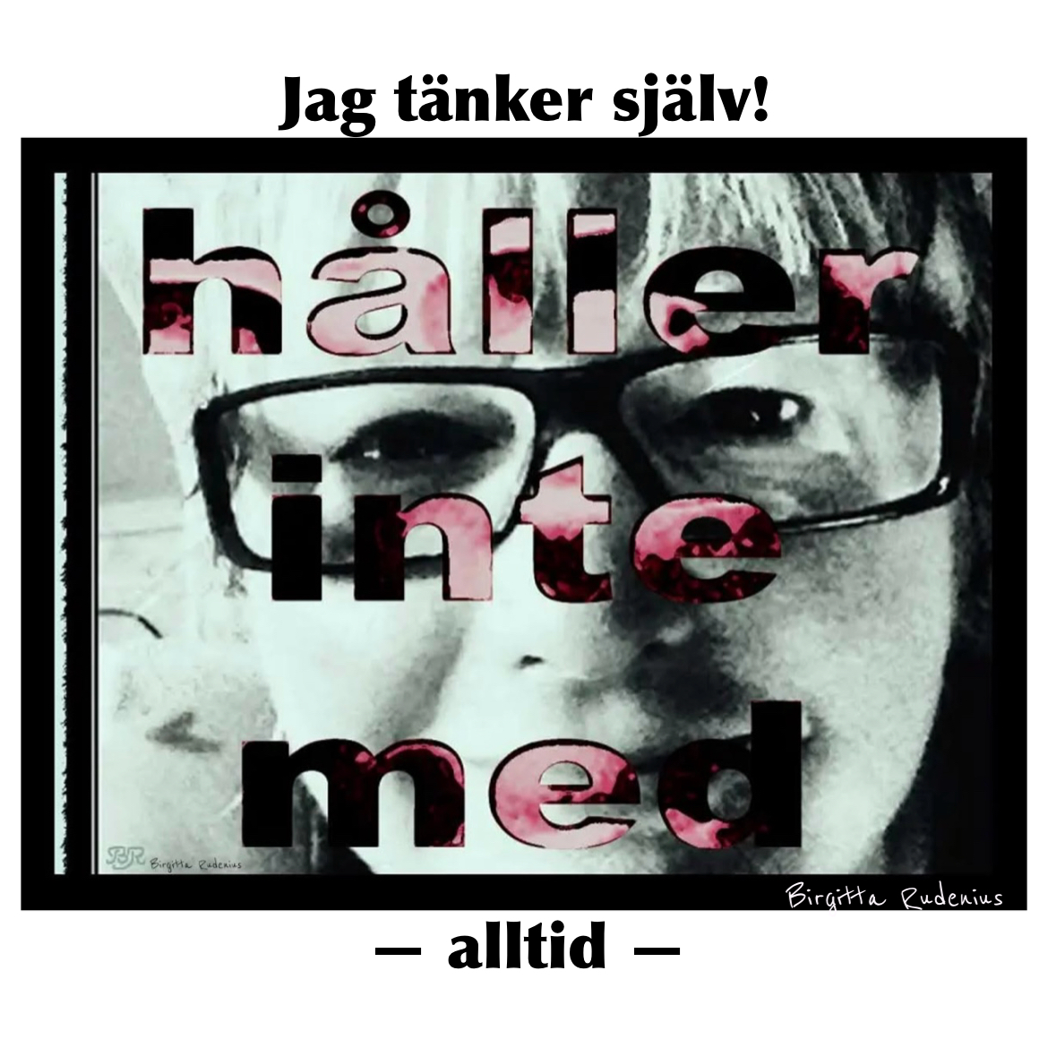 Jag tror att jag ska gå över till att framföra mina tankar och frågor omkring företeelser. VERKLIGHETEN så som den framstår är alltid utgångspunkten för mina reaktioner. Barnperspektivet är alltid med. Människors beteende och hur de framställer sig själv är bland det intressantaste jag vet. Massfenomen, flockbeteende, ‘fiskstim’, hjorder av människor, odyl har alltid varit ringande varningssignaler för mig. Jag har aldrig dragits med i sådana fenomen och lockats av flocken.